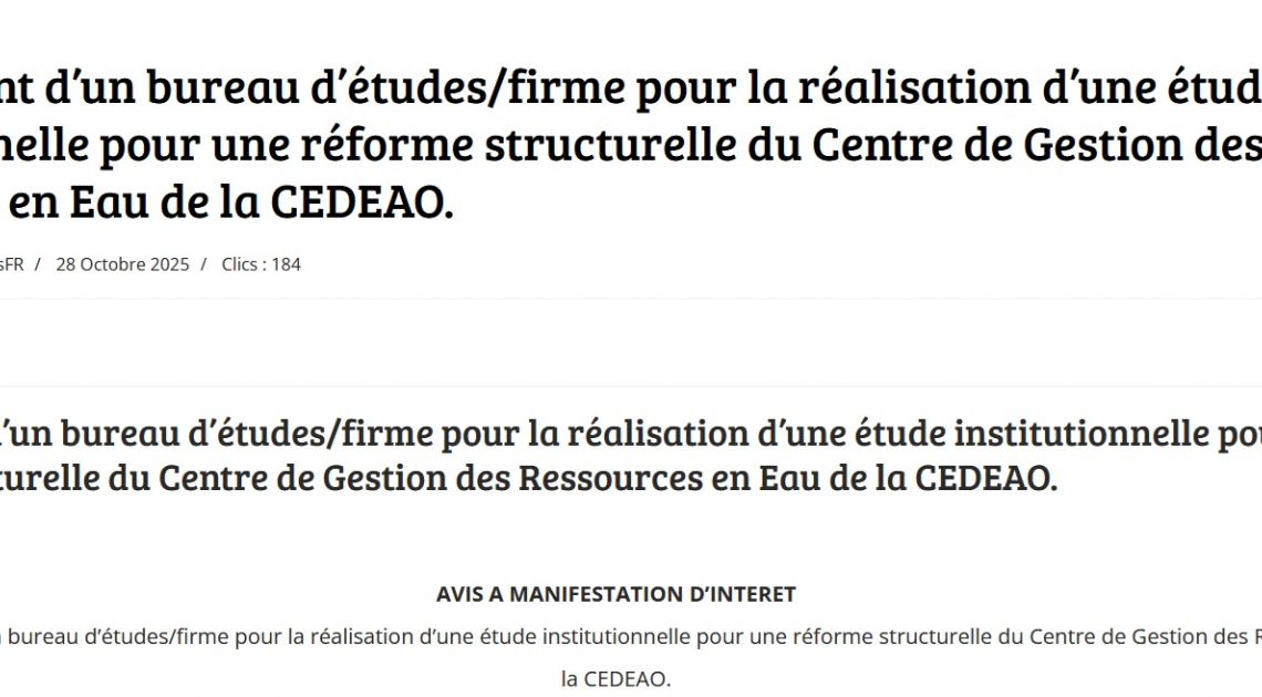 RECRUTEMENT D'UN PRESTATAIRE POUR L'ORGANISATION DE LA SEMAINE NATIONALE DE L'EAU
