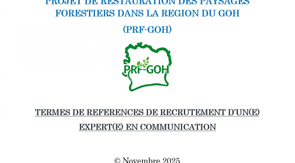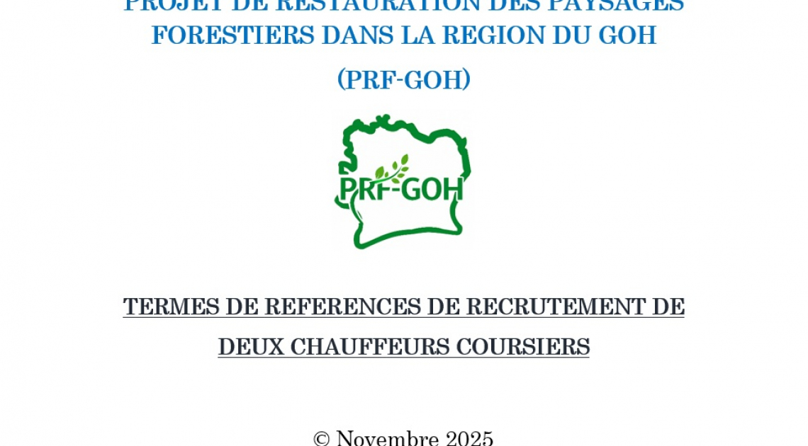 Dans le cadre du démarrage du Projet de Restauration Forestière de la Région du GOH (PRF-GOH), un avis à manifestation d'intérêt pour le recrutement du Cabinet d'Assistance Technique devant...
