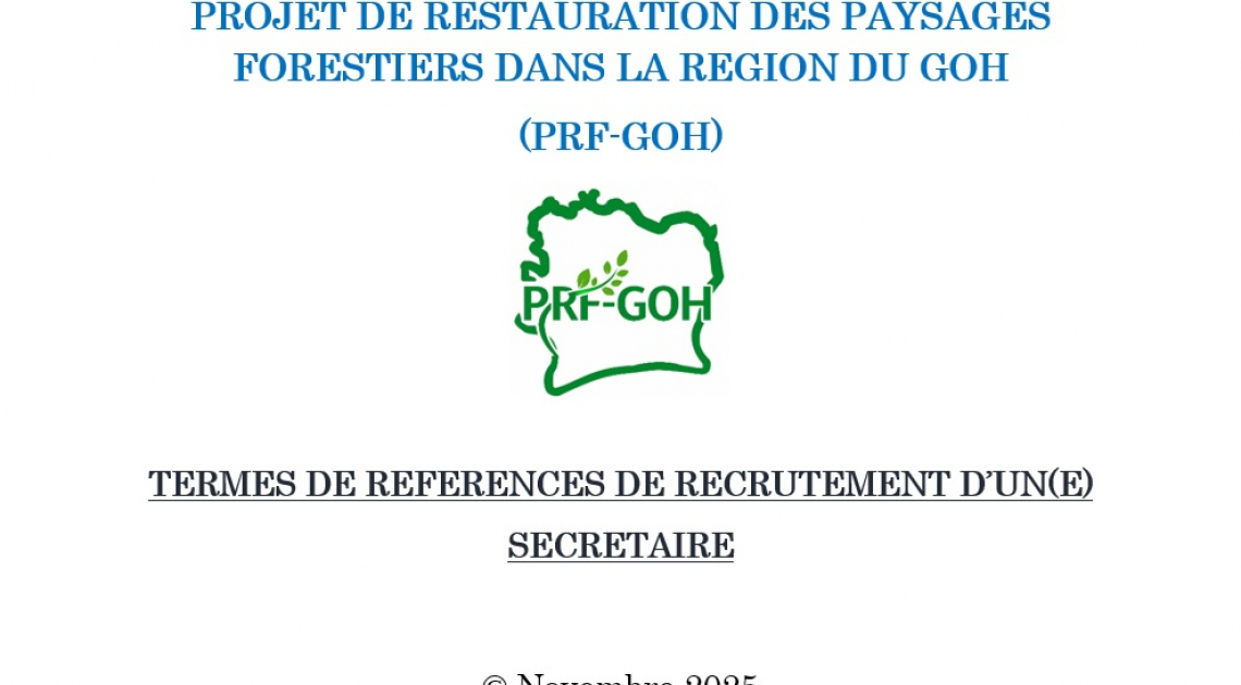 Dans le cadre de la mise en œuvre du Programme de Restauration Durable des Forêts - Côte d'Ivoire (PRDF-CI), il est procédé au recrutement des membres de l'Unité de Gestion du Programme (UGP/...