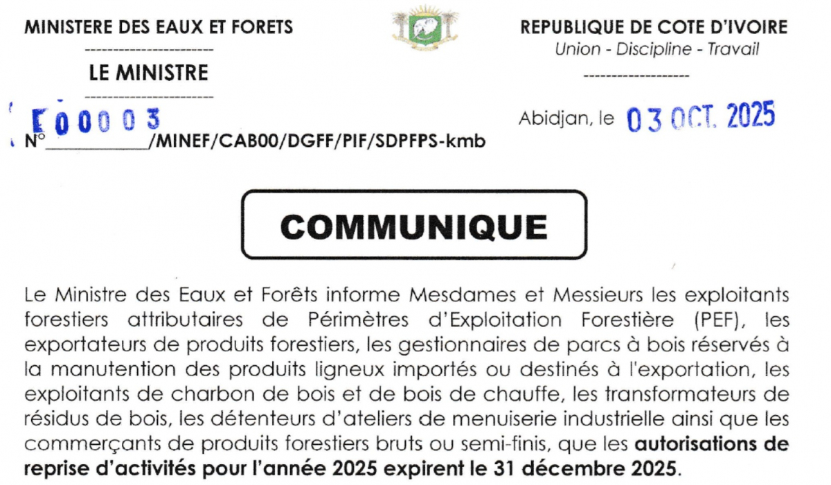 Dans le cadre de la mise en œuvre du Programme de Restauration Durable des Forêts - Côte d'Ivoire (PRDF-CI), il est procédé au recrutement des membres de l'...