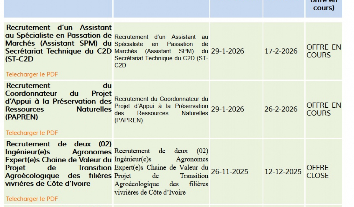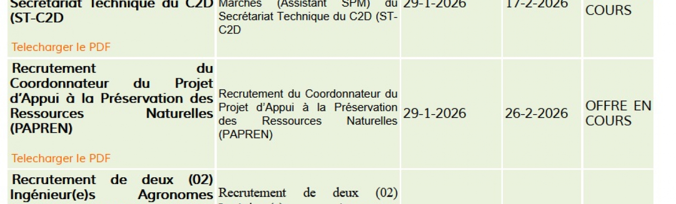 1/ Recrutement du Coordonnateur du Projet d’Appui à la Préservation des Ressources Naturelles (PAPREN)