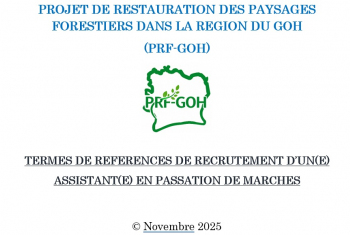Dans le cadre du démarrage du Projet de Restauration Forestière de la Région du GOH (PRF-GOH), un avis à manifestation d'intérêt pour le recrutement du Cabinet...